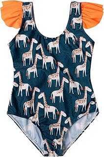 Badeanzug für Mädchen, einteilig, mit Motiv, Fischkinderwagen, einteiliger Badeanzug mit Rüschen für Mädchen von 2-6 Jahren