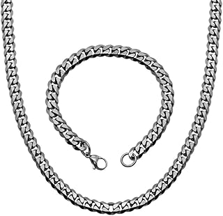 Königskette 55cm + Armband 5mm Panzerkette Halskette Edelstahl Herren-Kette Schwarz Silbern Gliederkette Set