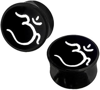 Horn Plug schwarz Bone Inlay weiß Om Organic Expander Piercing Tunnel Büffelhorn