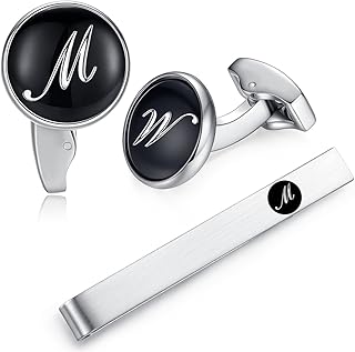 manschettenknöpfe & Schmale krawattennadel Set Initialen Buchstabe Herren Edelstahl Hochzeit Cufflinks Manschettenknopf Silber,MEHRWEG