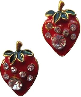 Ausgefallene Ohrringe Ohrstecker Stecker Erdbeere mit Straßsteinen Straß *559*