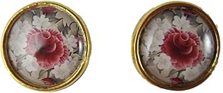Ausgefallene Ohrringe Ohrstecker Stecker Cabochon Edelstahl Vintage bunte Rose / Blume / Blüte *2368*