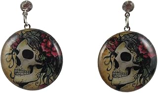 Ausgefallene Ohrringe Ohrstecker Stecker Cabochon Kunststoff Gothic Horror Skull Totenkopf mit Rose 2700