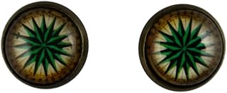 Ausgefallene Ohrringe Ohrstecker Stecker Cabochon Edelstahl Vintage Kompaß Himmelsrichtung Pfadfinder grün Stern 5798