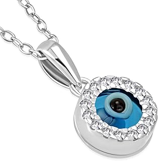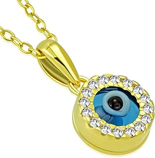 Sterling Silber Evil Eye Anhänger Halskette Blau Zirkonia Anhänger Halskette für Frauen Mädchen 18 Zoll, Weiß/Gelbgold plattiert Verfügbar