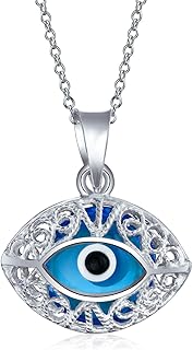 Türkischer Schutz Vintage Stil hellblau und Marine filigran Oval Evil Eye Charm Anhänger Halskette für Frauen Teen Murano Glas 925 Sterling Silber made In Turkey