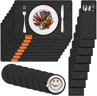Filz Platzset Tischsets Abwaschbar 19er Set 6 Platzsets Untersetzer Bestecktaschen 1 Untersetzer Box-Platzset Abwischbar Beleg rutschfest(Dunkelgrau)