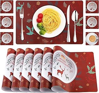 Sunshine smile Tischsets Platzsets Weihnachten,12 Stück Weihnachts Platzset und Untersetzer,Wasserdicht PVC Platzset,rutschfest,Hitzebeständig,Abwaschbar,Premium Tischsets für Esstisch Weihnachten