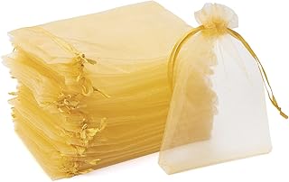 Adorfine Organza-Geschenkbeutel, Schmuckbeutel, Hochzeitsgeschenkbeutel, 10 x 15 cm, mit Kordelzug, perfekt für Hochzeit, Geburtstag, Jubiläumsfeier (Gold), 120 Stück