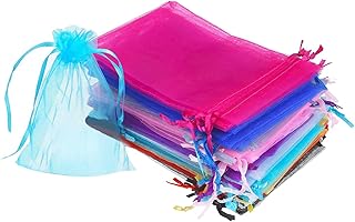 Pinsheng 100 Stück Organzasäckchen, 10x15 cm Sortierte Farbe Organza Geschenkbeutel Organzabeutel mit Zugband Schmuckbeutel Hochzeit Säckchen