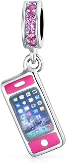 Rosa Handy Handy Handy Smartphone Baumeln Charme Perle für Frauen Teen Email .925 Sterling Silber passt europäisches Armband