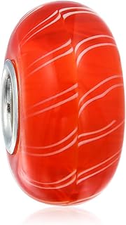 Murano Glas Abstandshalter Orange Streifen Charm Perle passt europäisches Armband für Frauen Teen .925 Sterling Silber Kern