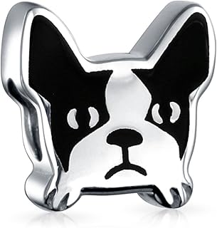 Haustier Frenchie Französische Bulldogge Hund Charm Perle für Frauen Teen Schwarz Weiß Email .925 Sterling Silber passt europäisches Charm Armband