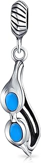 Sport Blau Skier Brille Schwimmer Schwimmbrille Baumel Perle Passt Europäisches Charm Armband Für Frauen Teen Email .925 Sterling Silber
