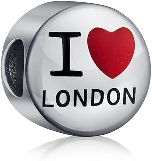 Reisetourismus England Frankreich Wörter Herz Ich liebe Paris London Charm Perle für Frauen Teen Email .925 Sterling Silber Fit Europäisches Armband