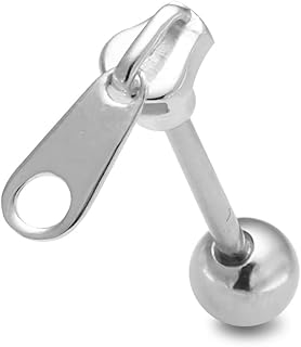 Sterling Silber Zip Top mit 14 Gauge 316L chirurgischer Stahl Straight Barbell Zunge Bar Piercing