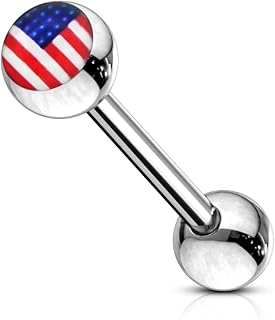 USA Flagge Logoball mit 14 Gauge 316L chirurgischer Stahl Straight Barbell Zunge Bar Piercing