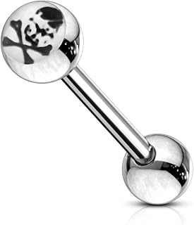 Totenkopf Logo Bild Ball mit 14 Gauge 316L chirurgischer Stahl Straight Barbell Zunge Bar Piercing
