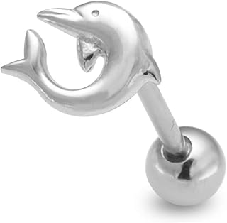 Sterling Silber Delphin Top mit 14 Gauge 316L chirurgischer Stahl Straight Barbell Zunge Bar Piercing