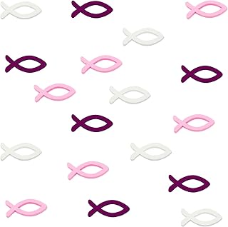 Oblique-Unique® 18 Holz Fische Streuartikel für Taufe Kommunion Konfirmation Streudeko Tischdeko Verzierung - Rosa Lila Weiß Mix