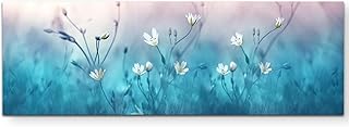 Paul Sinus Art Leinwandbilder | Bilder Leinwand 120x40cm weiße kleine Blumen auf türkiser Wiese