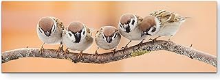 Paul Sinus Art Leinwandbilder | Bilder Leinwand 120x40cm Spatzen auf einem Holzzaun