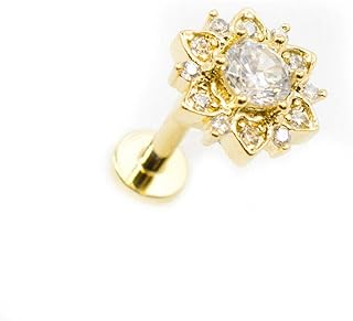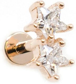 Ohrstecker mit flacher Rückseite für Labret, Monroe, Ohrknorpel mit Doppel-CZ-Stern, Innengewinde, Chirurgenstahl, 16 g