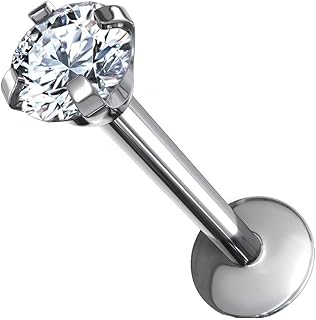 Produktinformationen "Zirkonia in Kesselfassung Labret mit Innengewinde Monroe". Dieses schöne Piercing besteht aus hochwertigem Chirurgenstahl und ist robust und langlebig! Am Ende des Stabs befindet sich ein ein Zirkonia der sich in einer Kesselfassung befindet. Produktinformationen "Titan Labret Piercing Innengewinde Monroe" Verkaufseinheit: 1 Stück : Material: TITAN 6AL-4V-ELI ASTM F-136 . Titan ist besonders hautfreundlich und als Ersteinsatz sowie bei Nickelallergie geeignet. Außerdem ist es sehr leicht, robust und kratzfest. Art: Helix / Tragus, Labret : Verwendung: Lippe, Ohr : Kugelgröße: 2 mm, 3 mm, 4 mm : Länge: 6 mm, 8 mm, 10 mm, 11 mm