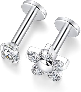 16G G23 Titan Flat Back Labret Studs Innengewinde Lippen Studs Tragus Piercing Monroe Medusa Lippenpiercing Silber Lobe Knorpel Conch Ohrringe Schmuck