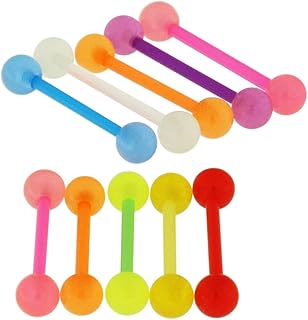 | Zungenpiercing 10er Pack | Zungenpiercings aus flexiblem Bioplast | Kugeln leuchten im Dunkeln | mit UV Acrylkugeln | Stabstärke: 14G (1,6 mm) | Hypoallergen