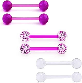 Incaton Zungenpiercing Barbell Leuchtend Glitzer Barbell Piercing Set Bioflex Flexibler Kunststoff, 14 Guage 16mm 6stk