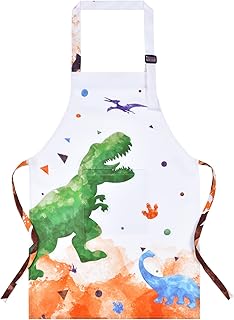 Dinosaurier Kinderschürze - Wasserdicht Polyester Schürzen mit Verstellbarem Gurt und Tasche Küche Koch Lätzchen Schürzen für Kinder Jungen Kochen Backen Malen Weihnachten Geschenke (Klein, 3-7 Jahre)