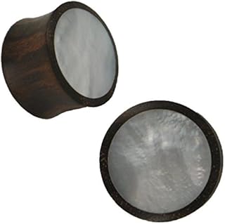 Organic Sonoholz Plug braun Perlmutt weiß schillernd Inlay Tribal