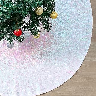 Pailletten-Baumrock, 121,9 cm, schillernd, weiß, großer Weihnachtsbaumrock für Weihnachten, Party, Ornament, Neujahrs-Baumschmuck
