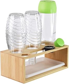 Flaschenhalter für SodaStream, Glasflaschen für Soda Stream Abtropfhalter Bambus, mit Abtropfschale und Pinsel, Geeignet für Eine Vielzahl von Flaschen, für z.B Soda Stream Crystal & Emil Flaschen