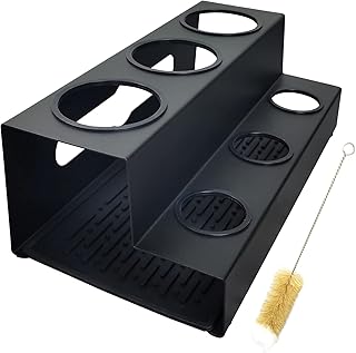 soda Stream Flasche abtropfbehälter Edelstahl 3er soda flaschenhalter mit Silikonringen Treppenstil schwarz Abtropfgestell mit Flaschenbürste, Abtropfständer für Soda Flasche Glasflaschen
