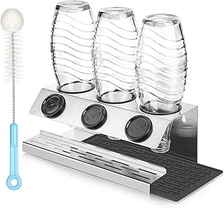 Sodastream Flaschenhalter, 3er Abtropfgestell Flaschen aus Edelstahl mit Herausnehmbare Tropfpad Flaschenständer Abtropfständer Soda Flaschenhalter für SodaFlasche und Glas Flaschen