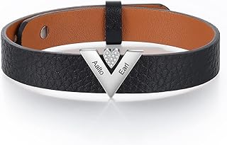 Personalisierte PU Leder Frauen Perlen Armband Handgelenk Gravierte Name Herz Perlen Armbänder Damen Armband Armreif für Freundin, Frau, Mutter Geschenk
