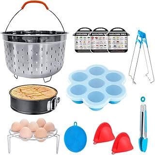 BestCool Zubehör für Instant Pot, 9 PCS Schnellkochtopf Zubehör mit Edelstahl Dämpfeinsatz,Ei Steamer Rack, Springform,Silikon-Ei beißt Form,Kochtopfhandschuhe, Dampfumlenker für 6/8 QT