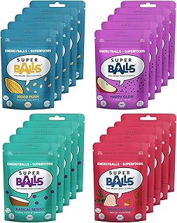 Superballs Gesunde Snacks, Happen für Veganer, Veganer Snack für das Büro, Snacks für Unterwegs, Zwischenmahlzeit, Leckerei, Trockenfruchtsnacks, Mix Box, 20-er Pack