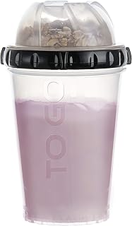 FACKELMANN 42115 Müsli-to-go-Becher, Joghurtbecher mit verschließbaren Zusatzbehälter, Reisebecher für gesunde Snacks (Farbe: Transparent/Schwarz), Menge: 1 Stück