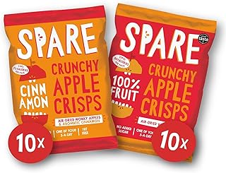 Spare Snacks knusprige Apfelchips (20 x 22 g Chips-Packung) 100% ganze Früchte. Gesunde, kalorienarme, fettfreie Apfel-Snacks.