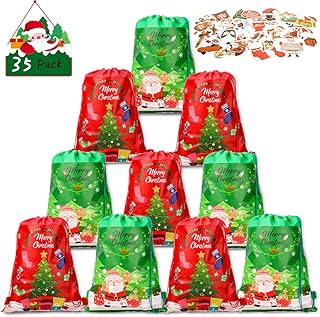 Qpout 10 Weihnachten Kordelzug Taschen Weihnachten Geschenk Rucksack Santa Weihnachtsbaum Geschenk Süßigkeitenbeutel 25 Weihnachten Thema Aufkleber für Party Geschenk Verpackung Deko