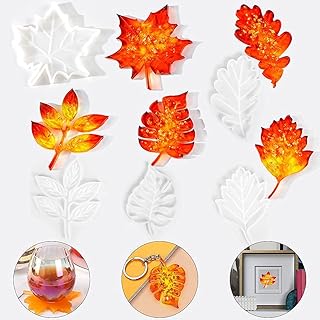 Ukontagood Resin Silikonform, 5 Stück Untersetzer Resin Gießharz Silikonform Blattform Epoxidharz Formen Set für Home Kitchen Wanddekoration