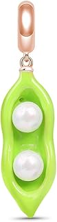 Sterling Silber 18K Roségold Charm mit Perle Erbsenschote Grün Anhänger Freund Freundin Fit für alle Armband und Halskette