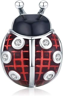 Marienkäfer Charm für Armband 925 Sterling Silber Rot Emaille Einsatz Charms Bead Kompatibel mit Pandora Armband Halskette
