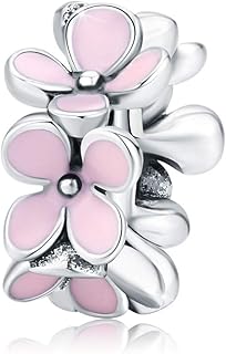 Blume Spacer Stopper kompatibel mit Pandora Armband Halskette 925 Sterling Silber Pink Emaille Charm Perle