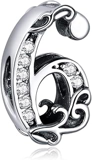 925 Sterling Silber Zahl Sechs Charms Zeichen Perle für Pandora Charm Armband und Halskette Schmuck für Frauen und Mädchen
