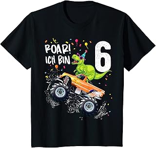 Kinder Geburtstag 6 Jahre Dinosaurier Monster Truck Jungen Mädchen T-Shirt