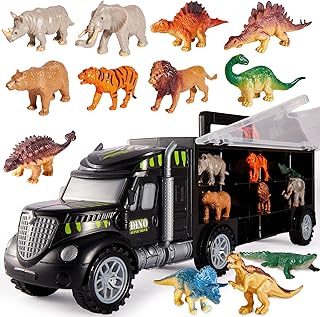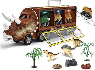 Dinosaurier Truck Spielzeug mit 15 Dinosaurier Figuren Spielzeugautos, Dinosaurier Geschenke Kinder Jurassic World Spielzeug für 3 4 5 6 Jahre alte Jungen Mädchen (19 Stück)